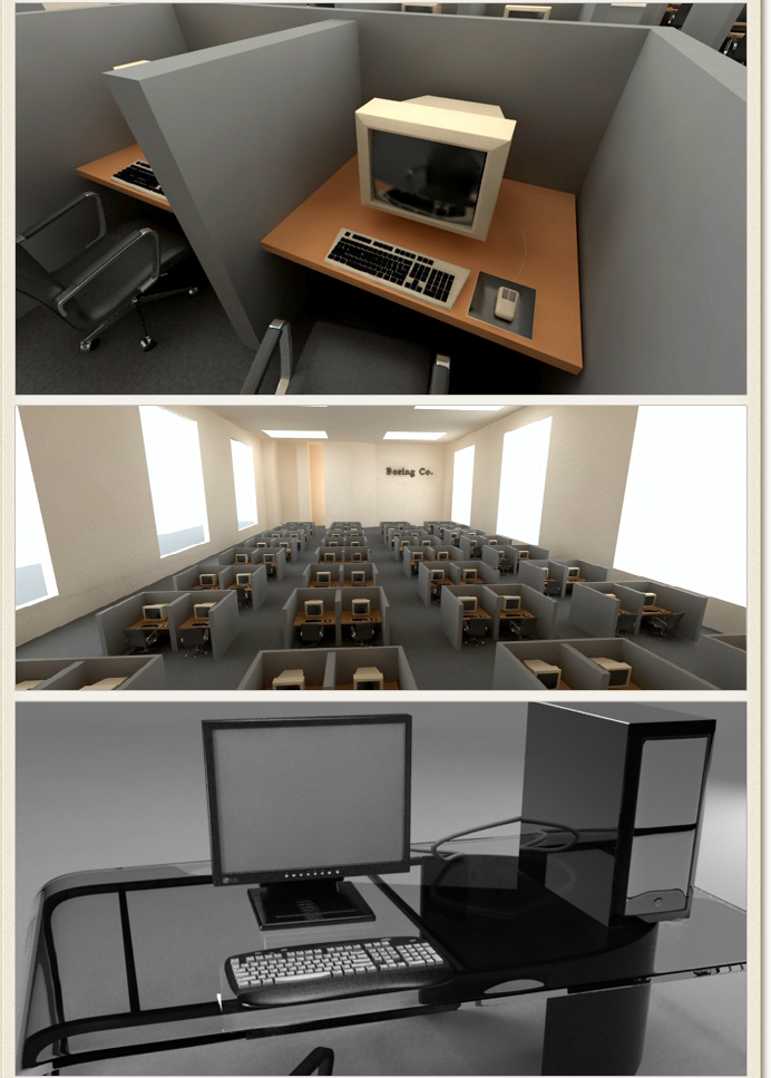 Ultra low-poly oldschool office I modelled from scratch in 3ds Max to contrast to the modern office (also shown below) - rendered with v-ray | |||||